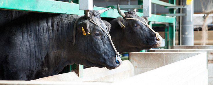 長太屋では社長自らが買い付けた優良血統の子牛を自家牧場で2年から3年の間、徹底した管理下のもとで飼育をし、よりよい松阪牛に育て上げます。